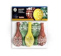 W opakowaniu znajduje się 5 szt. kolorowych balonów w białe Wielkanocne wzorki i napis WESOŁYCH ŚWIĄT.