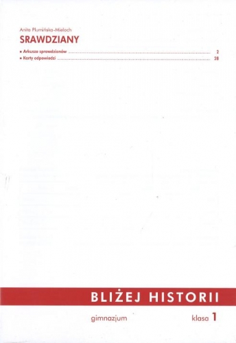 Dodatkowa publikacja z cyklu "Bliżej historii" dla klasy 1 gimnazjum, zawierająca materiały dla nauczyciela, składa się z trzech zeszytów dostosowanych do wpięcia w segregator.• W pierwszym zeszycie znalazło się trzynaście sprawdzianów (w wersjach A i B), z których każdy obejmuje trzy jednostki lekcyjne. W sprawdzianach zamieszczone zostały m.in. zadania oparte na tekstach źródłowych i historiograficznych, ilustracjach oraz mapach. Do każdego sprawdzianu przygotowana została karta odpowiedzi.• Zeszyt drugi zawiera scenariusze wszystkich lekcji, w tym powtórzeniowych, wraz z kartami pracy.• W skład trzeciego zeszytu wchodzą ćwiczenia z mapami konturowymi - dziewiętnaście map, którym towarzyszą rozbudowane zestawy poleceń.