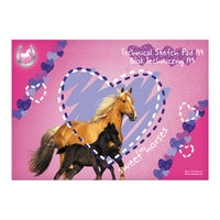 Blok techniczny z 10 białymi kartkami. Okładkę zdobią zdjęcia koni. 20 sztuk