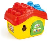 Wiaderko w kształcie domku z otwieranymi drzwiami i dachem.