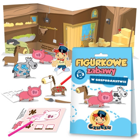 Zestaw zawiera figurki do pokolorowania i złożenia, wierszowane zagadki o zwierzętach oraz inspirujące propozycje zabaw.