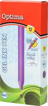 Długopis żelowy OPTIMA końcówka pisząca 0,7mm kolor fioletowy. Opakowanie 12 sztuk