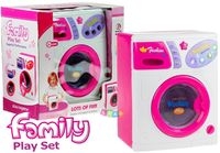 Duża kolorowa pralka z obrotowym bębnem oraz efektami świetlno-dźwiękowymi. Pralka posiada: otwierany bęben, otwierany pojemnik na proszek, 4 świecące diody, pokrętło spustowy, wąż odprowadzający wodę. Wymiary pralki: 26 cm x 18 cm x 11 cm