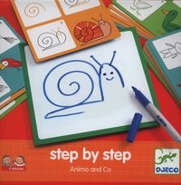 Zestaw do nauki rysowania zwierząt. Zawartość: ścieralna tabliczka, pisak, 24 karty z instrukcjami krok po kroku. Zabawka dla dzieci w wieku od 3 lat.