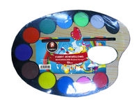 Zestaw farb akwarelowych na dużej palecie. Komplet 12 kolorów z pędzelkiem.