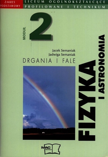 Zakres podstawowy!Treści przedstawione w podręczniku dotyczą ruchu drgającego i zjawisk falowych. Punkt wyjścia stanowią rozważania odnoszące się do opisu drgań i fal mechanicznych, oparte na wynikach obserwacji i prostych doświadczeń, jakie może wykonać uczeń w szkole lub w domu. Omówiono powstawanie fal elektromagnetycznych i ich widmo oraz zjawiska towarzyszące rozchodzeniu się światła w ośrodkach materialnych; zwrócono uwagę na płynące stąd wnioski odnoszące się do natury światła. Powyższe wiadomości wprowadzone są w sposób znacznie szerszy i bardziej uroizmaicony pod względem matematycznym niż w gimnazjum. Podręcznikowi nadano konstrukcję blokową, stosując wyraźne oddzielenie fragmentów tekstu, odnoszących się do określonego zagadnienia fizycznego. Tytuły poszczególnych bloków umieszczone na marginesie umozliwiają sprawne odnajdywanie informacji. Dodatkowo służy temu indeks pojęć i terminów znajdujący się na końcu podręcznika. Wydzielone i oznaczone są opisy doświadczeń, przykłady rozwiązań określonych problemów fizycznych oraz treści poszerzające wiadomości uczniów szczególnie zainteresowanych przedmiotem.