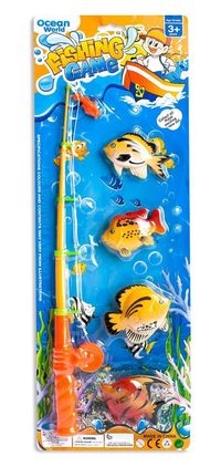 Kolorowa gra zręcznościowa rybki. Idealna zarówno dla chłopców jak i dziewczynek. W zestawie plastikowa wędka oraz cztery kolorowe rybki.