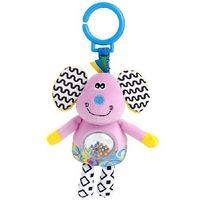 Na brzuszkach znajduje się lusterko z kolorowymi kuleczkami, które potrząsane wesoło wirują i grzechoczą.
