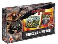 Zestaw zawiera 2 gry " Chińczyk" -jest to wersja klasycznej gry losowej, przeznaczona dla 2 do 4 osób. Można w niej stosować pewne taktyczne posunięcia. Ta gra o bardzo prostych zasadach zawsze wyzwala wiele emocji. W grze Wyścig mieszkańcy Berku rozsmakowali się w nowym sporcie- wyścig na grzbietach smoków. Dołącz do rozgrywek, błyskawicznie okrąż wioskę i postaraj się jako pierwszy dotrzeć ze Smoczej Akademii do mety. Ten kto pierwszy doleci do najwyższego masztu, wygrywa. Weź w niej udział i spróbuj dotrzeć do mety na pierwszym miejscu.