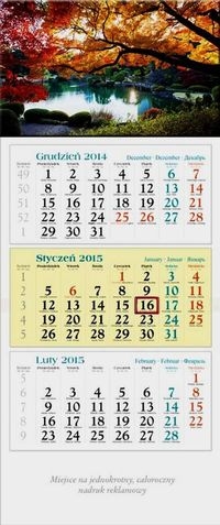 Format kalendarza z "główką" i polem pod nadruk reklamowy 33 x 86 cm;