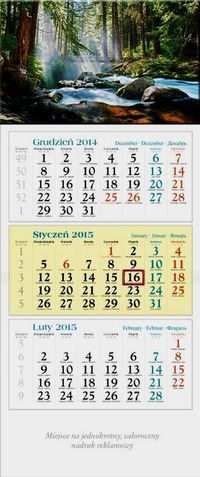 Format kalendarza z "główką" i polem pod nadruk reklamowy 33 x 86 cm;