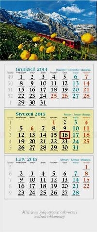 Format kalendarza z "główką" i polem pod nadruk reklamowy 33 x 86 cm;