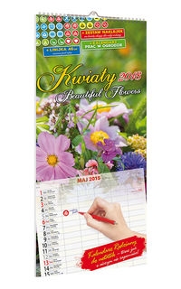 Rodzinny kalendarz ścienny, drukowany na papierze niepowlekanym dla łatwego notowania.