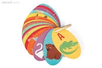 Kolorowe karty z ilustracjami to świetna pomoc w nauce alfabetu dla każdego dziecka. Z jednej strony znajduje się duża i mała literka wraz z nazwą zwierzątka, zdrugiej zaś obrazek zwierzątka.