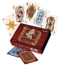 W zestawie 2 talie kart, każda po 55 listków z grafikami utrzymanymi w klimacie Świąt Bożego Narodzenia.