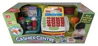 Kasa sklepowa ze skanerem. W zestawie półki z produktami: buteleczki pudełeczka plastikowe monety papierowe banknoty Zabawka wymaga baterii: 3x1,5V AA, nie dołączone do zestawu. Dla dzieci w wieku powyżej lat 3.