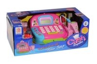 Kasa sklepowa ze skanerem i mikrofonem. W zestawie koszyczek z produktami: buteleczki pudełeczka plastikowe monety papierowe banknoty Zabawka wymaga baterii: 3x1,5V AA, dołączone do zestawu. Dla dzieci w wieku powyżej lat 3.