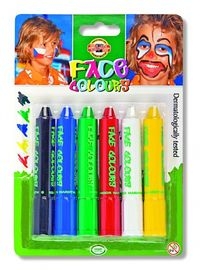 Kredki w formie pomadki do malowania twarzy. Testowane dermatologicznie, nie wywołują podrażnień i nie uczulają. Można je łatwo nanosić oraz zmywać za pomocą wody z mydłem. Doskonale nadają się do malowania twarzy na imprezy sportowe, karnawałowe, dziecięce spotkania, zabawy itp.