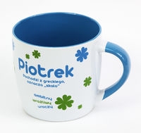 - ceramiczny kubek imienny - ozdobiony kolorowym nadrukiem i opisem pochodzenia danego imienia oraz przypisanych do niego cech charakterologicznych - pojemność: ok. 330 ml
