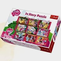 Jeśli lubisz opowiadać historie to polubisz 3x Story Puzzle. Ten wspaniały zestaw dla najmłodszych składa się z 3 puzzlowych historyjek o przygodach Kucyków Pony, z których każda przedstawiona jest za pomocą trzech obrazków. Razem to aż 9 układanek do zabawy zamkniętych w jednym pudełku. Historyjki można dowolnie łączyć i zakańczać, wykorzystując do tego odpowiednią ramkę. Porusz swoją wyobraźnię i stwórz naprawdę długą opowieść. 3x Story Puzzle to wiele możliwości i mnóstwo radości.