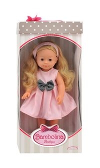 Lalka Bambolina Boutique posiada naturalne proporcje, miękkie włosy oraz mrugające szklane oczy. Każda rzęsa mocowana jest indywidualnie, co poprawia jakość lalki oraz trwałość elementów. Ubrania, wykonane ze znakomitej jakości tkanin, można prać w pralce.