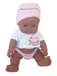 Lalka Murzynka biało-różowe ubranko siedząca 22 cm Zabawka dla dzieci w wieku od 12 miesięcy.