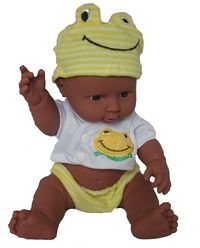 Lalka Murzynka żółte ubranko siedząca 22 cm
