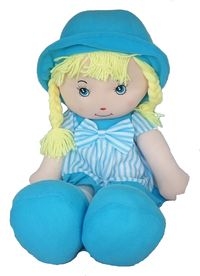 Lalka przytulanka szmaciana 54 cm w niebieskim ubranku. Dla dzieci w wieku od 3 lat.