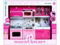 Zestaw zawiera: kuchenkę z piekarnikiem, zmywarkę, zlew, kuchenkę mikrofalową, szafki kuchenne i wiele innych akcesoriów kuchennych. Produkt wykonany z plastiku. Przeznaczony dla dzieci od 3 lat. Wymaga zasilania bateriami 3xLR44 (załączono)
