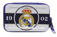Metalowy portfel zapinany na zamek błyskawiczny. Posiada z dwie przegrody oraz jedną kieszonkę na suwak, przeznaczoną na bilon. Produkt oryginalny, licencja Real Madryt.
