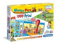 Zestaw zawiera: 1 interaktywne pióro (baterie dołączone), 32 karty z 64 zadaniami, 1 gra planszowa Quiz w mieście, ruletka ze strzałką, 4 pionki, instrukcja.