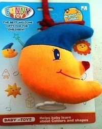 Pozytywka w kształcie księżyca, z miękkiego materiału. Po naciągnięciu sznurka gra spokojną melodyjkę, która uśpi twojego maluszka. Wiek 0m+