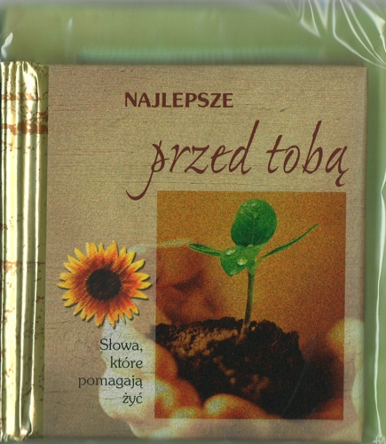 Jeśli chcesz powiedzieć więcej niż tylko`dziękuję ci, `dobrze, że jesteś`, ta mała książeczka przyjdzie ci z pomocą, wyrażając twoją troskę i miłość. NAJLEPSZE PRZED TOBĄ to zbiór fragmentów Biblii, które napełnią otuchą tych, którzy je przeczytają. Do każdej książeczki dołączony jest karnet na wpisanie życzeń oraz ozdobna torebka upominkowa. Całość zapakowana w folię ochronną.