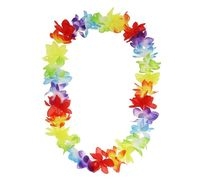Hawajski naszyjnik z kolorowych, materiałowych kwiatów, długość 90 cm.