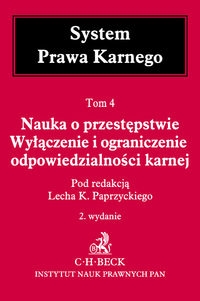Tom 4 Systemu Prawa Karnego, pod redakcją prof. dr hab. Lecha Paprzyckiego, Prezesa Izby Karnej Sadu Najwyższego, pt. Nauka o przestępstwie, wyłączenie i ograniczenie odpowiedzialności karnej, łącznie z tomem 3, Nauka o przestępstwie, Zasady odpowiedzialności, prezentuje fundamentalną i niezwykle ważną dla prawa karnego problematykę przestępstwa ? czyli czynu zabronionego, popełnionego z zamiarem, uznanego za zasadniczo społecznie szkodliwy lub społecznie niebezpieczny, konkretnie zdefiniowanego i zagrożonego karą na mocy prawa karnego. Publikacja ta poświęcona została szczegółowemu przedstawieniu zasad wyłączenia i ograniczenia odpowiedzialności karnej za popełniony czyn.