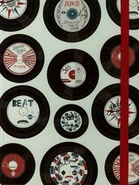 Notatnik Midi Winylowa płyta marki Peter Pauper Press. Posiada oryginalną okładkę z wytłaczanymi wzorami i tylną kopertą na drobne notatki. Zamykany jest na gumkę. Notatnik w linie.
