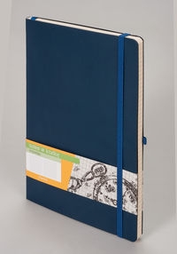 Notes B 5 Oprawa miękka, ekologiczna z materiału skóropodobnego. Papier 80 g. Pierwsza i ostatnia strona notesu wykonana z ozdobnego papieru w kolorze czarnym. Koperta z tyłu na luźne karteczki. Specjalna gumka na długopis. Wstążka w kolorze okładki. Notes zamykany na gumkę. Ilość stron: 192. Wymiary: 172 x 247 mm.
