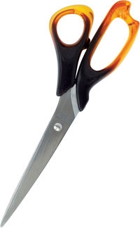 ? wysokiej jakości nożyczki z nierdzewnej, hartowanej stali ? ostre końcówki nożyczek umożliwiają precyzyjne wycinanie ? uchwyty z tworzywa sztucznego w kolorze bursztynowym