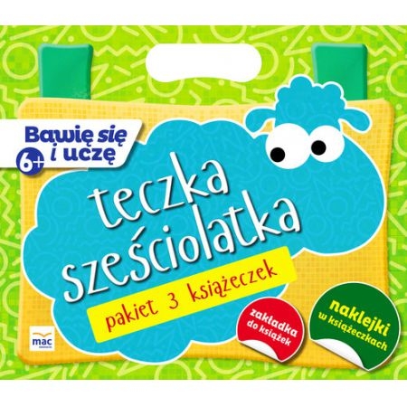 Pakiet. Bawię się i uczę. Teczka 6- latkaBawię się i uczę to publikacje rozwijające zainteresowania dziecka, jego talenty i umiejętności. Główkowanki zawierają wiele ciekawych krzyżówek, łamigłówek, zadań logicznych, rebusów i labiryntów. Treści dotyczą edukacji: polonistycznej, matematycznej, przyrodniczej i społecznej. Zadania te pozwalają dzieciom, poprzez zabawę, pogłębić zdobytą wiedzę, rozwijają spostrzegawczość i koncentrację uwagi, pobudzą różne sfery rozwoju poznawczego, ułatwiają samodzielna naukę.Śladowanki to zbiór ćwiczeń grafomotorycznych, takich jak: kolorowanie, rysowanie pośladzie, kreślenie szlaczków, łączenie kropek, rysowanie po liniach, bez odrywania kredki od kartki. Ich celem jest usprawnienie rąk dziecka . publikacja przygotowuje i zachęca dziecko do nauki pisania.Pokoloruj swój świat to doskonała książeczka, która pomaga kształtować wyobraźnię dziecka, rozbudza jego fantazję, przygotowuje do nauki pisania oraz pobudza kreatywność.W skład Teczki 6 latka, wchodzą: pakiet 3 książeczek (Główkowanki, Śladowanki, Pokoloruj swój świat- zawody) zakładka do książek naklejki.Wiek: +6 lat