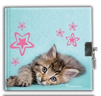 Pamiętnik w twardej oprawie, zamykany na kłódkę. 80 kartek w linie.