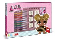 Zestaw maxibox na licencji LOL Surprise. L.O.L. Surprise to niezwykle popularna kolekcja laleczek, które są zapakowane w wyjątkowy sposób w specjalnej kuli. Kupując zabawkę, dzieci nie wiedzą jaką w środku znajdą laleczkę. Rozpakowując kulę, dzieci zdejmują kolejne warstwy opakowania, za którymi kryją się różne niespodzianki ? naklejki, akcesoria do lalek, itp. Sama laleczka znajduje się wewnątrz kuli. Zestaw zawiera 7 pieczątek, 3 pisaki, 1 poduszeczkę do tuszu i 1 notatnik.