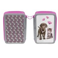 Piórnik 3-komorowy bez wyposażenia. Zadrukowane kolorowe wnętrze.