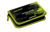 Zapinany piórnik z 2 skrzydełkami, z elastycznymi uchwytami na przybory szkolne. Bez wyposażenia.