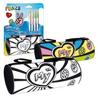 Piórnik do malowania Peace. Kolorując za pomocą dołączonych markerów postaraj się zachować odstęp co najmniej 2 mm od czarnego konturu. Tusz sam wypełni kolorowaną powierzchnię. Dla dzieci w wieku powyżej lat 3.