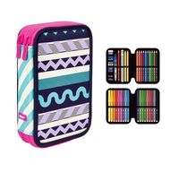 Przy produkcji piórników użyto najlepszych materiałów, bardzo wytrzymałych suwaków oraz wzmocnionych nici.