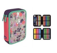 Piórnik MILAN 2-poziomowy z wyposażeniem Kolekcja:PULU LAND Idealny do domu lub szkoły. Wyposażenie: 12 kredek trójkątnych, 18 flamastrów ze stożkową końcówką, długopis P1, ołówek trójkątny HB, temperówka AFILA, 2 gumki syntetyczne, linijka trójkątna.