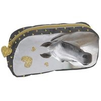 Piórnik Paso Horse złote serduszka w formie saszetki. Idealny na dodatkowe akcesoria szkolne. Wyposażony jest w pojemną komorę zasuwaną na zamek. Stanowi idealny dodatek do klasycznych piórników, które nie pomieszczą dodatkowych aksesoriów szkolnych, takich jak temperówka, klej, cyrkiel, korektor czy markery. Wzór piórnika został dopasowany do kolekcji Paso Horse złote serduszka, co czyni go świetnym uzupełnieniem szkolnej wyprawki. Piórnik może być użyty także jako etui. W Paso dbamy, aby nasze piórniki były funkcjonalne, lekkie i jednoczesnie pakowne.