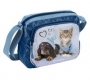 Piórnik szkolny z wyposażeniem. Na wyposażenie piórnika składają się: długopis, ołówek, dziewięć kolorowych kredek, siedem kolorowych pisaków, linijka, ekierka, gumka do mazania, temperówka, plan lekcji i tabliczka mnożenia.