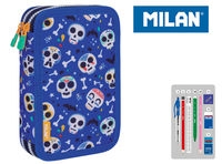 Piórnik MILAN 2-poziomowy z wyposażeniem z kolekcji BATS & BITES w niebieskiej kolorystyce i z kolorowym nadrukiem.