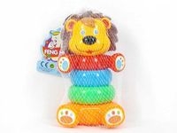 Zabawka - piramidka z krążków w kształcie lwa. Zabawka z dźwiękiem - głośnik w podstawie. Dla dzieci w wieku od 18 miesięcy.